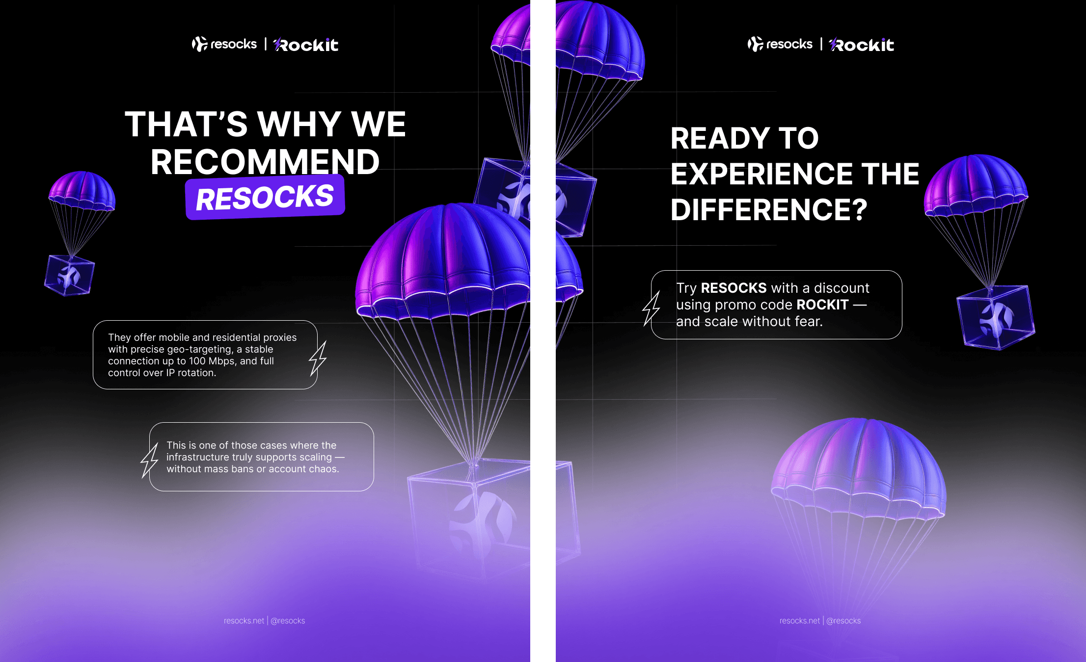 Resocks is a mobile proxy provider offering high-speed connections, dynamic IP switching, and scalable solutions for businesses. To stand out in a competitive market, the company needed a strong and recognizable brand identity. We created a modern logo and cohesive visual system that communicates reliability, speed, and technical sophistication while remaining approachable. The new branding strengthens market positioning and supports future growth.
