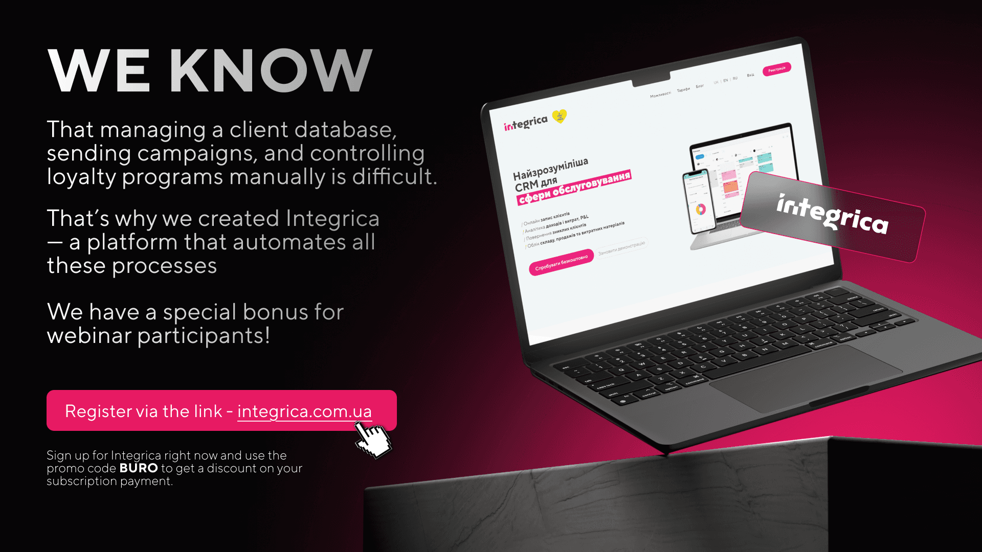 Integrica — це CRM- і automation-платформа, створена для того, щоб допомагати бізнесам керувати взаємовідносинами з клієнтами, програмами лояльності та маркетинговими процесами в єдиній системі.