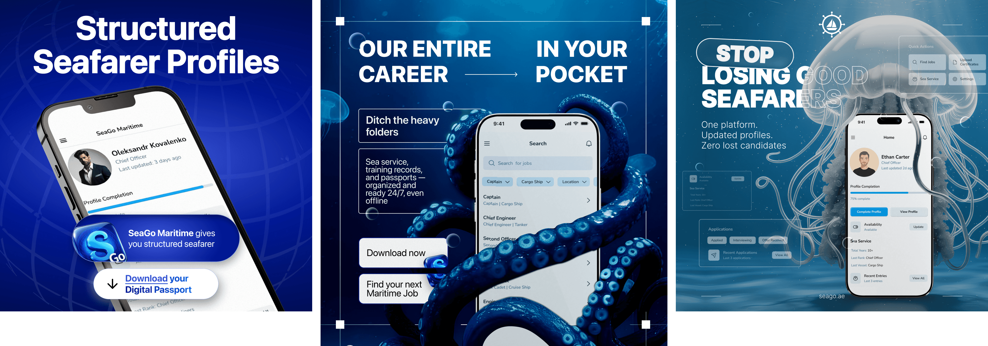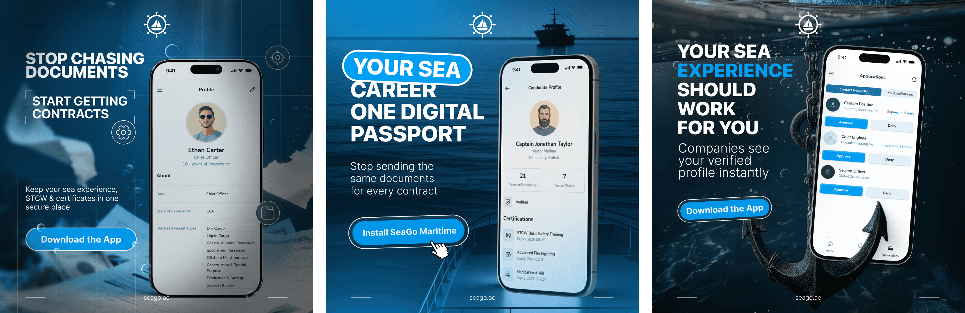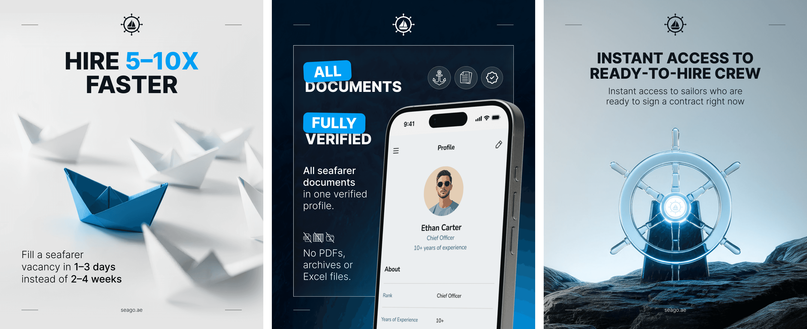 SeaGo — цифрова maritime-платформа, створена для того, щоб спростити найм і управління персоналом у морській індустрії. Вона об’єднує верифіковані профілі моряків, структуровану документацію та швидкий зв’язок між фахівцями й роботодавцями.